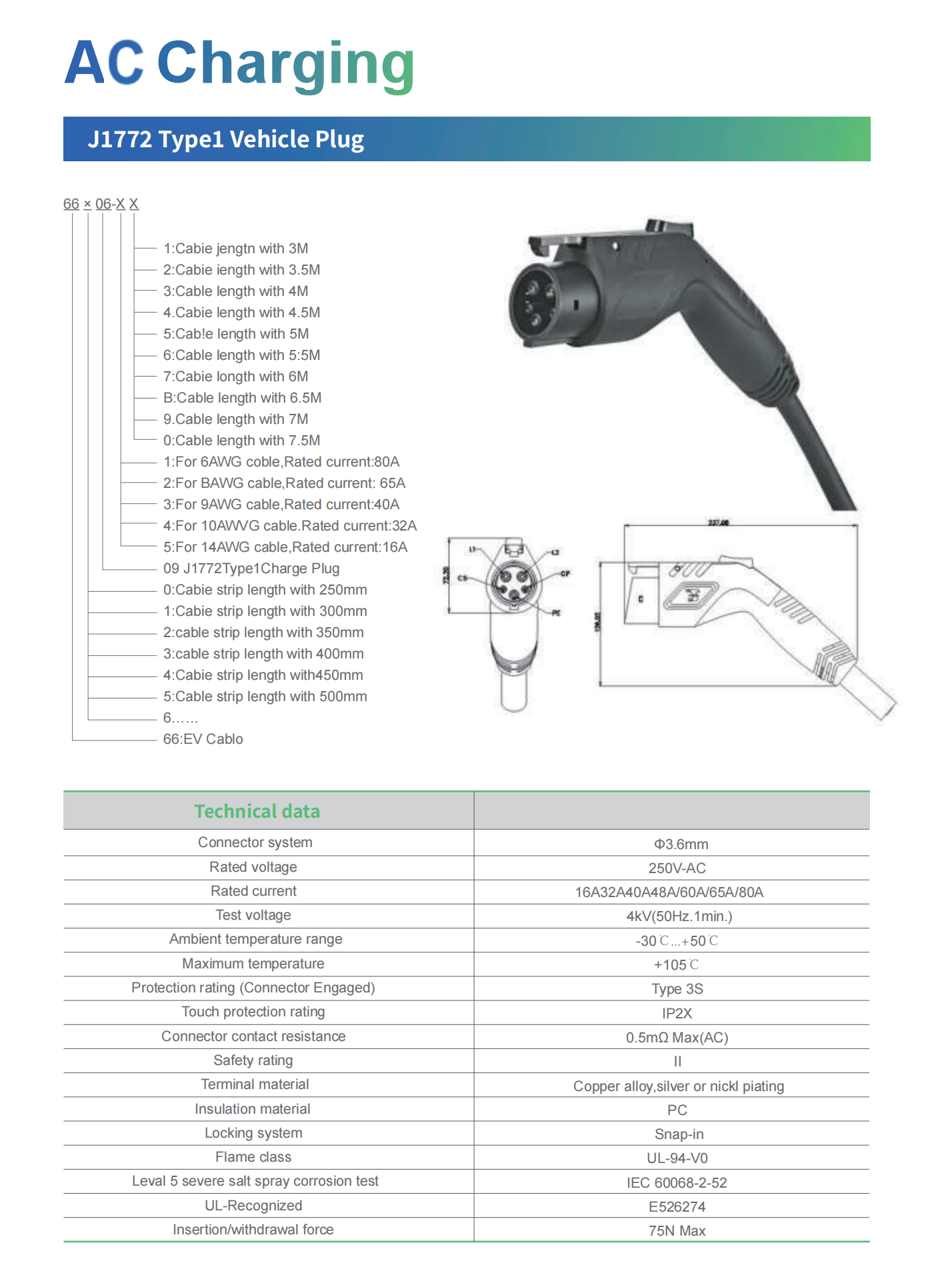 Type1 Charging Cable
