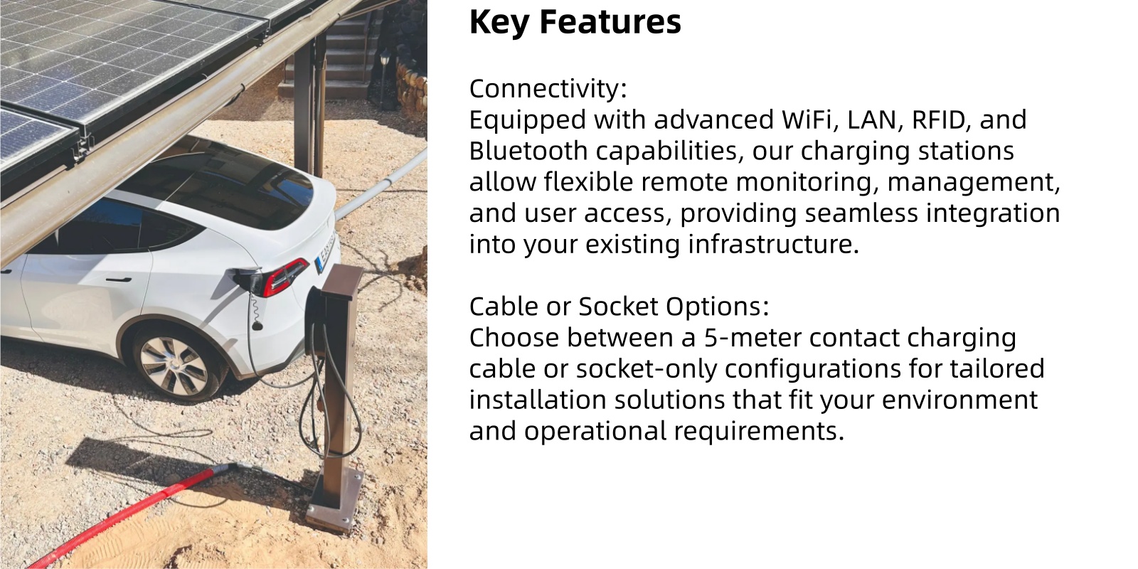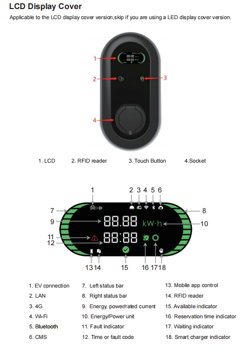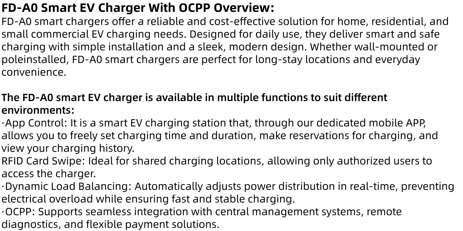 Function: App Control/Rfid Card Swipe/OCPP/Dynamic Load·Balancing(Optional)/Solar charging(Optional)