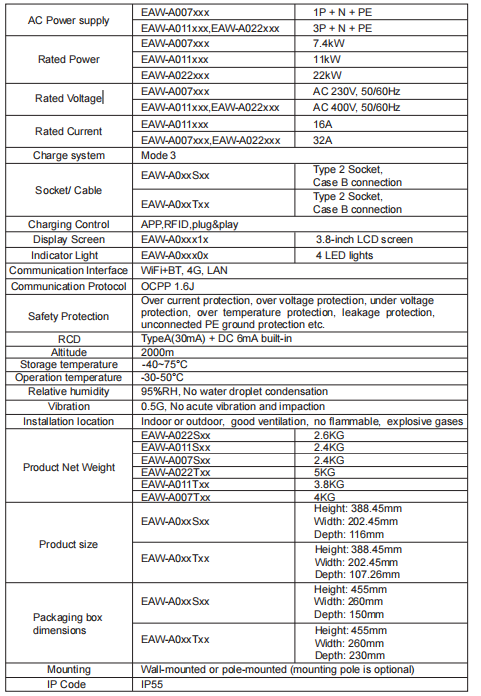 Maximum Power:7.2kW/11KW/22KW.